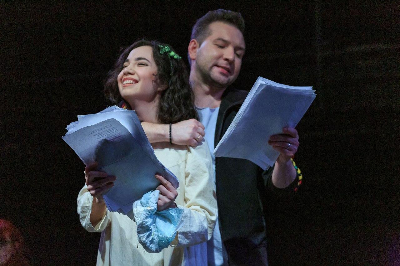 И тут начинается часть вторая, как говорится, ставшая любимой, где появляется та самая «больная» девочка. Постепенно раскрываться образ благополучной пары, где муж – непризнанный, несостоявшийся гений-музыкант (актёр Глеб Голендер), а жена – железный, бесчувственный робот (завуч театра «Ильхом» Элина Резникова).