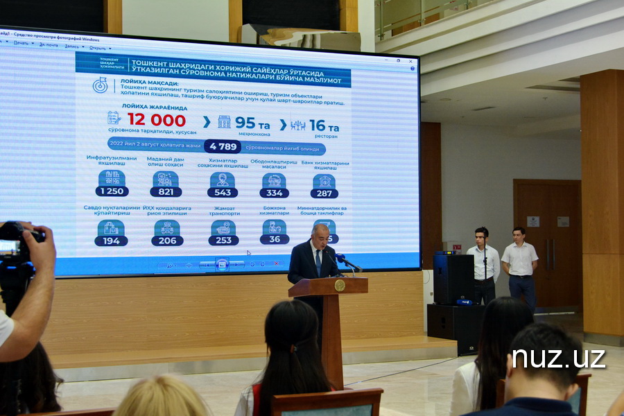 Изучение отзывов и предложений туристов хокимият проводил методом персонального опроса посетителей гостиниц и ресторанов. Ответы на вопросы должны дать ориентиры, чтобы хокимият имел представление, какие меры необходимо предпринять для того, чтобы туристы посетили Ташкент еще раз.