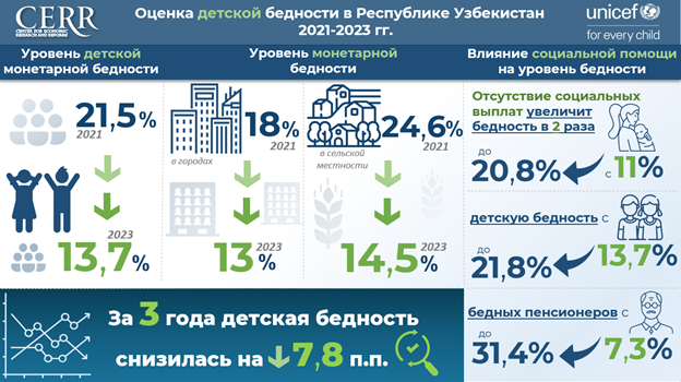 Центром экономических исследований и реформ совместно с Представительством Детского фонда ООН в Узбекистане проведена оценка уровня монетарной бедности среди детского населения, а также анализ эффективности системы социальной защиты.