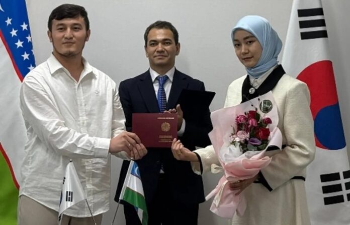 Консульский отдел Посольства Узбекистана в Южной Корее 10 октября официально зарегистрировал сотый брак между гражданами Узбекистана за 2025 год. Новую семью создали Элёр Нурдинов и Нилуфархон Нуриддинова.