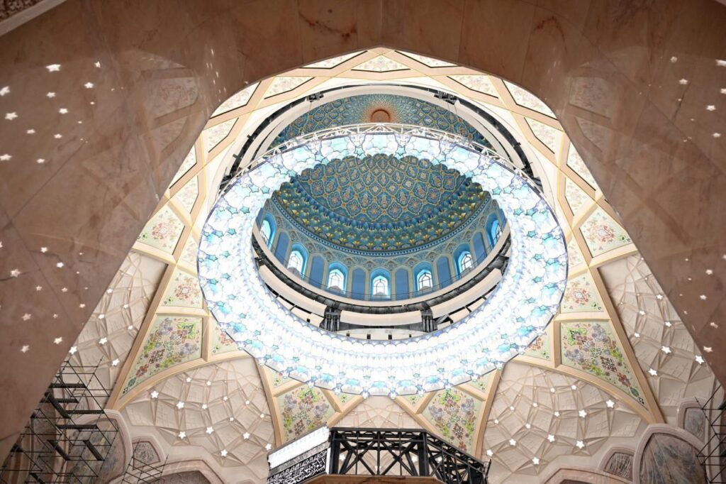 Комплекс объединяет древние архитектурные традиции и национальные декоративные элементы. С четырех сторон возвышаются порталы по 34 метра, а купол в центре достигает 65 метров.