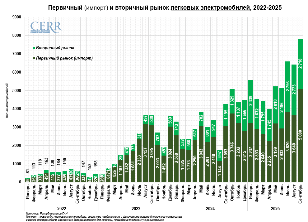 В сентябре было реализовано рекордных 7,8 тыс. электромобилей, что на 21,6% выше августовского показателя.
