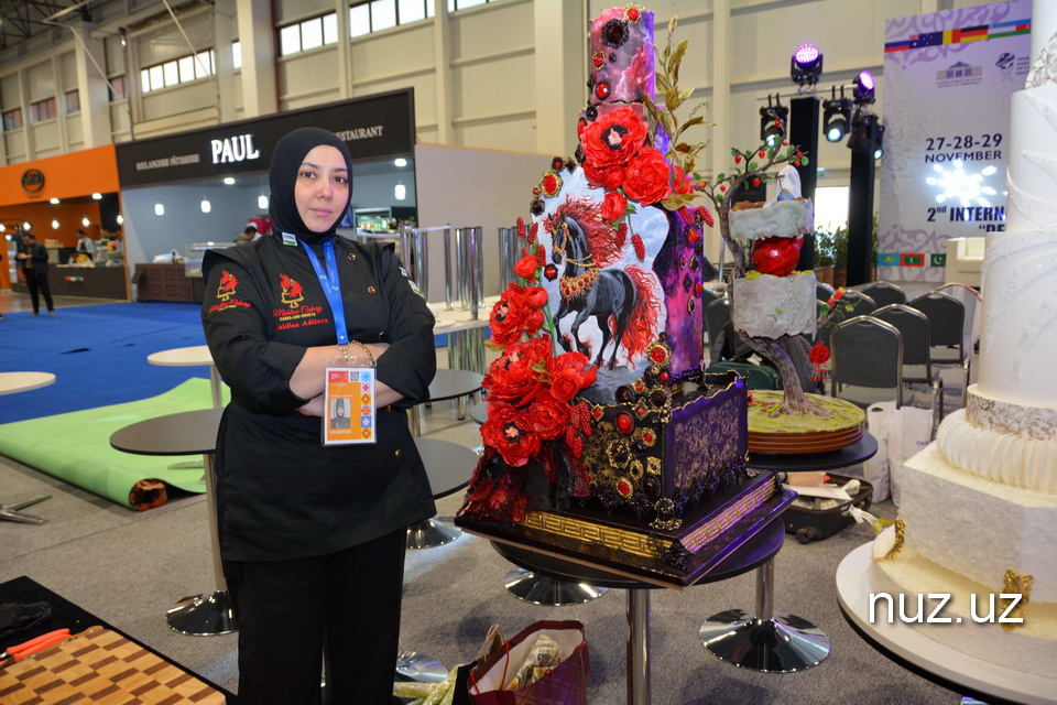 – Я 20 лет работаю кондитером. Композицию для первой номинации – художественно оформленный торт создала в моих самых любимых цветах – красном, черном, золотом. Он собран из национальных символов и изображения символа наступающего 2026 года – лошади. Каждую деталь готовила своими руками. Это результат семидневного труда, в который вложила свои эмоции, вдохновение, – рассказала кондитер Мухлиса Орипова. – У меня есть кондитерская Muhlisa kekkeri, где пекут десерты, торты, национальные сладости. За 20 лет я обучила тысячи людей в разных странах. 2 декабря еду в Китай проводить курсы по приготовлению тортов, пирожных, чак-чака. У меня на три месяца вперед обучение расписано. Несмотря на это, все время учусь сама, а в конкурсе участвую, чтобы попробовать свои силы. Буду рада получить медаль и желаю всем участникам удачи.