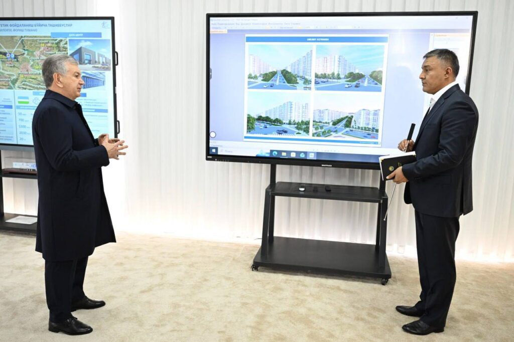 Президент также ознакомился с мастер-планом и проектами реновации въездной части города Джизака.