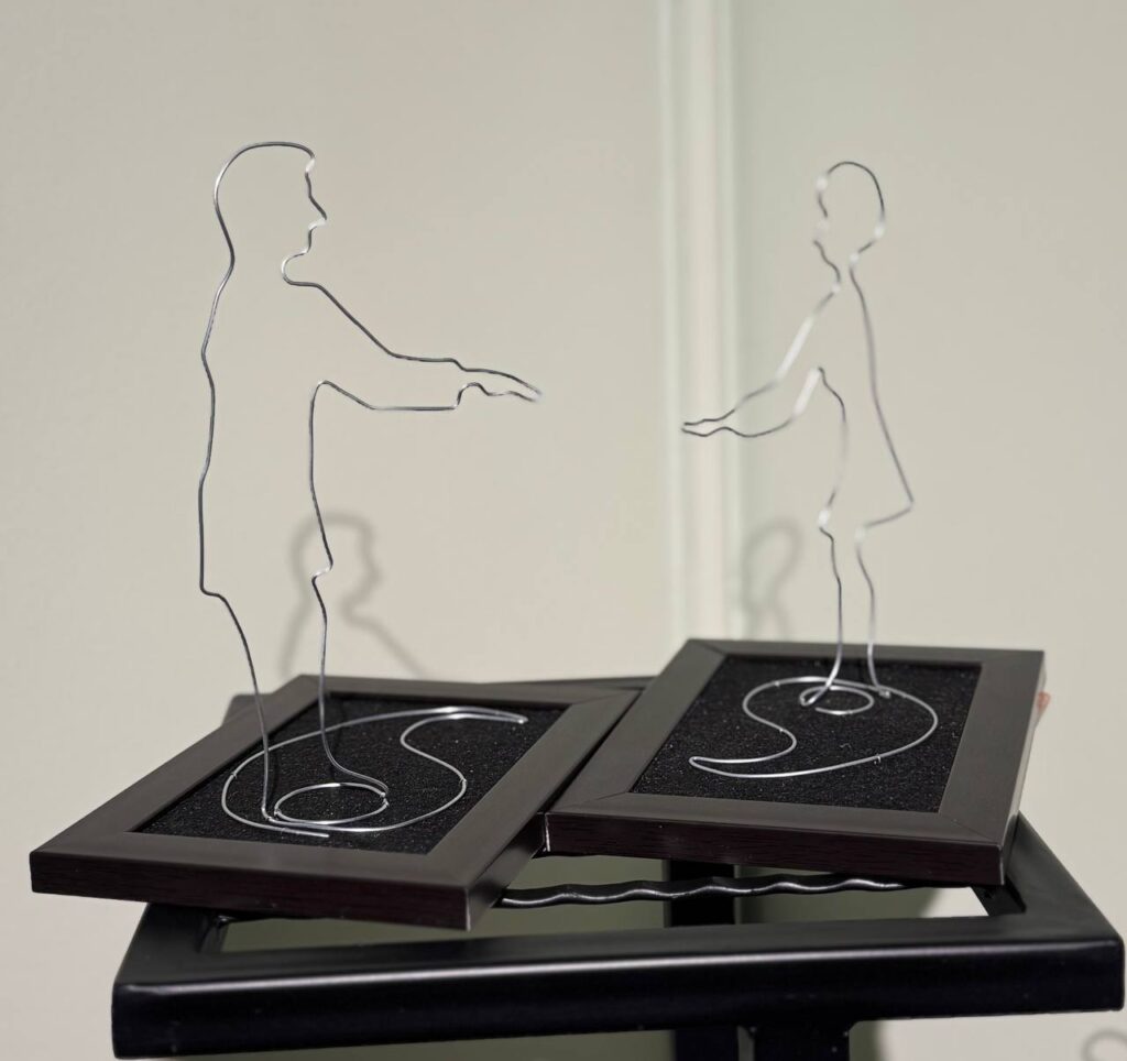 13 декабря в Ташкенте открылась выставка Александра Строкова «Этот Инь придуман не нами, этот Янь придуман не мной». Это истории про отношения, рассказанные языком проволоки. Одна линия, как одна мысль, одно чувство, одна попытка понять друг друга. Иногда именно так и выглядят отношения: тонкие, упрямые, гибкие, непрерывные.