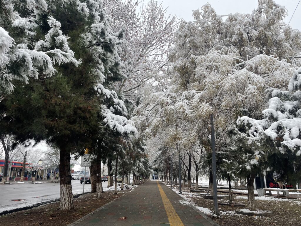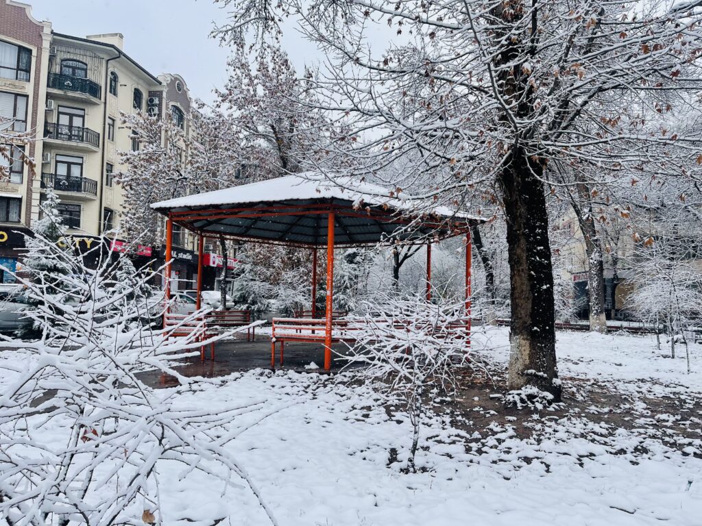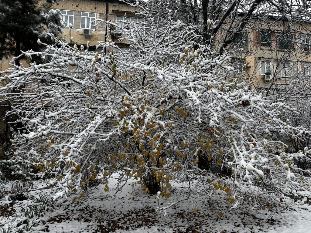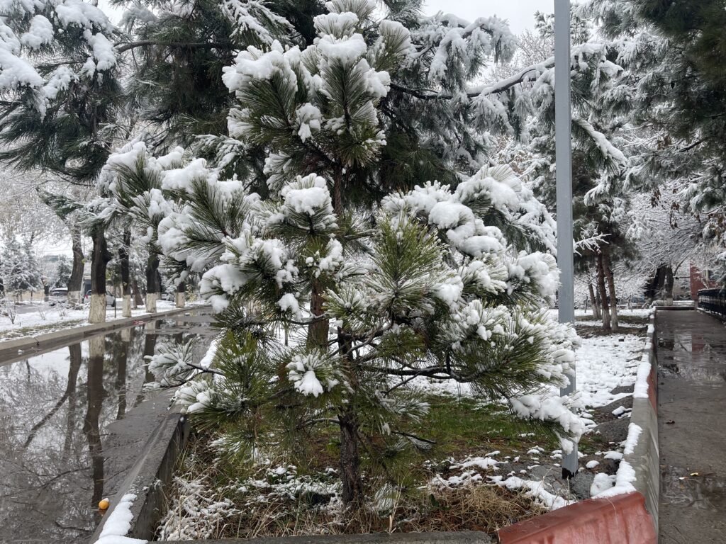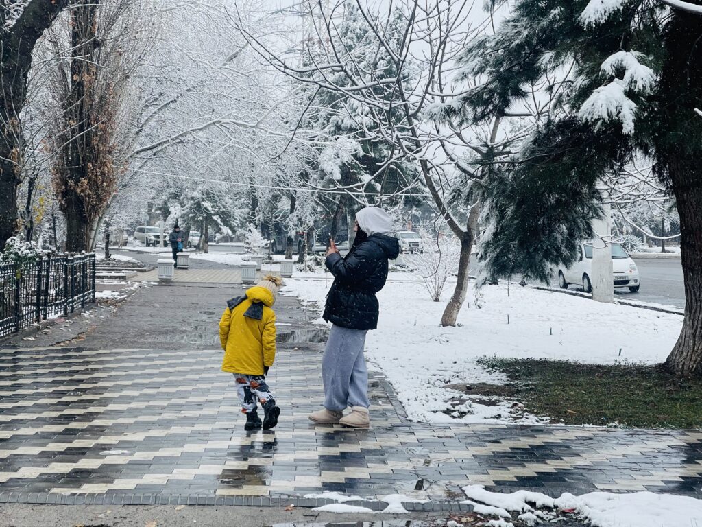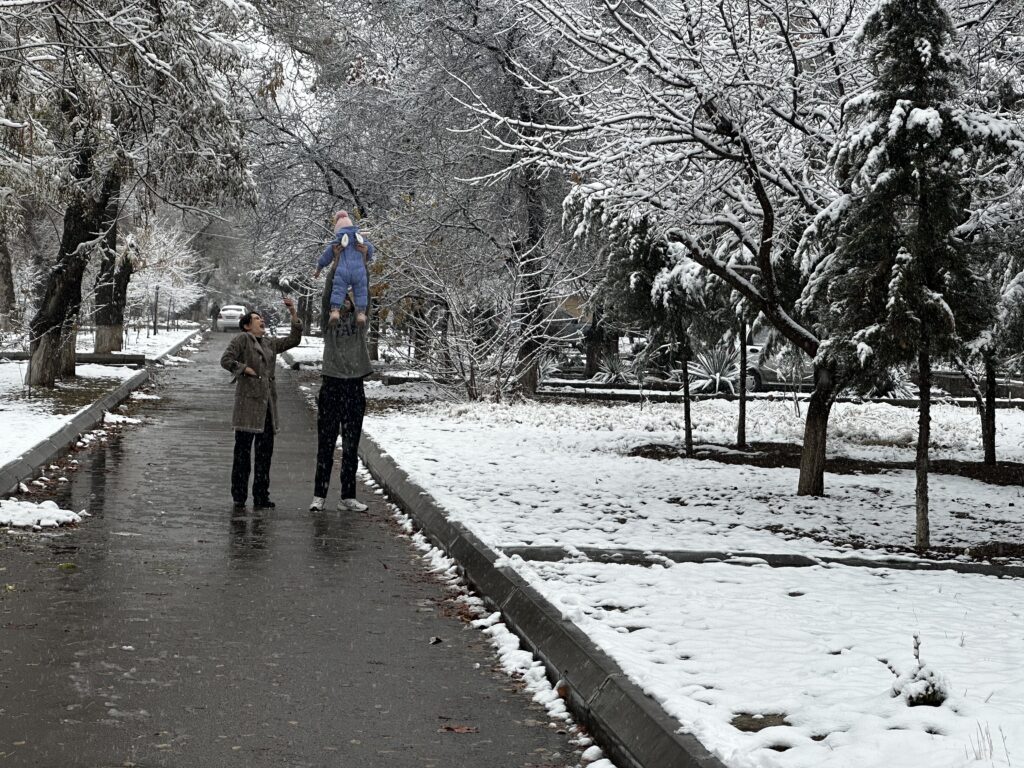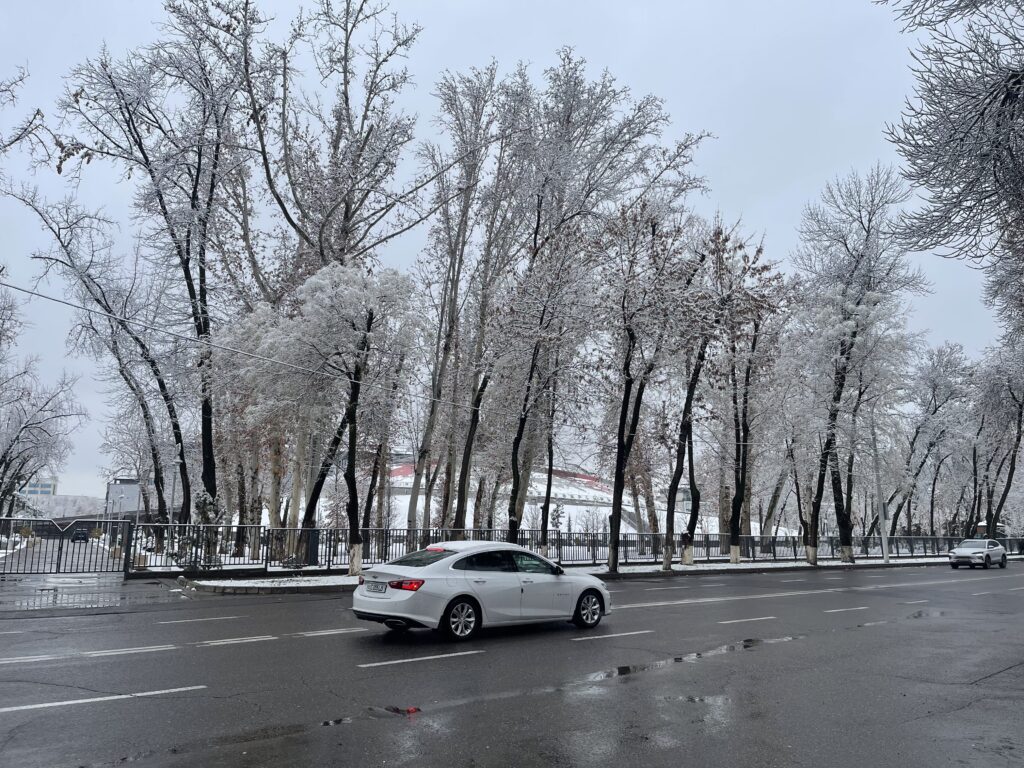 В Ташкенте выпал первый снег этого сезона. Улицы, парки и дворы преобразились, а горожане встретили зиму прогулками, улыбками и первыми снежными кадрами. В нашем фоторепортаже — атмосфера заснеженного города и жизнь столицы в первый зимний день.