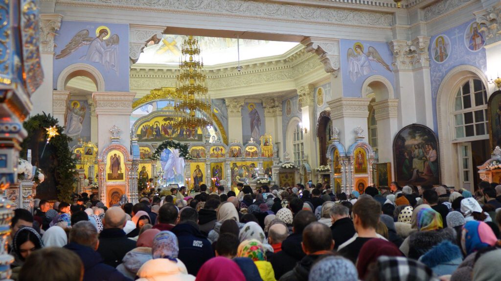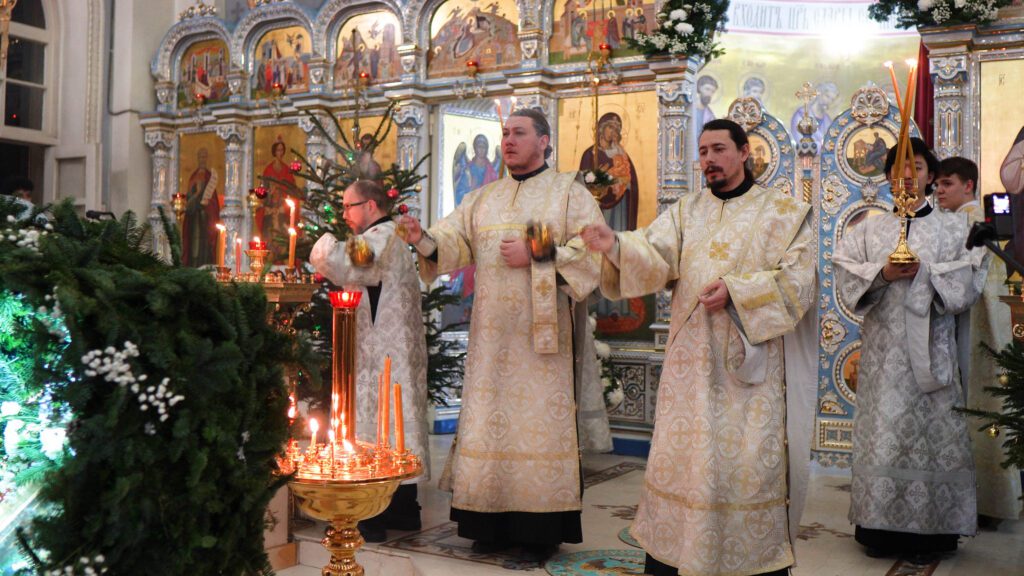Атмосфера праздника ощущалась уже на подступах к храму: праздничная иллюминация и торжественное настроение прихожан создавали особый уют в холодную январскую ночь. Внутри собор предстал в своем величественном праздничном убранстве. Золочёные оклады икон, отражающие мягкий свет сотен горящих свечей, и аромат ладана настраивали на глубокую молитву.