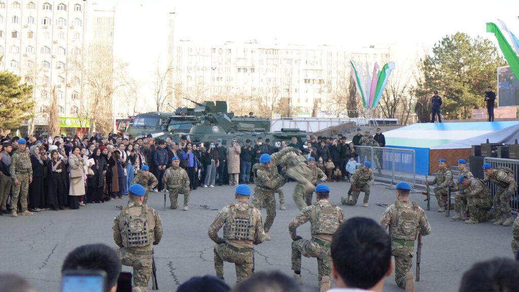 Площадь «Дружбы народов» в Ташкенте стала в эти праздничные дни центром притяжения для горожан и гостей столицы. Здесь проходит выставка современных образцов военной техники и вооружения, демонстрирующая оборонную мощь и потенциал национальной армии.