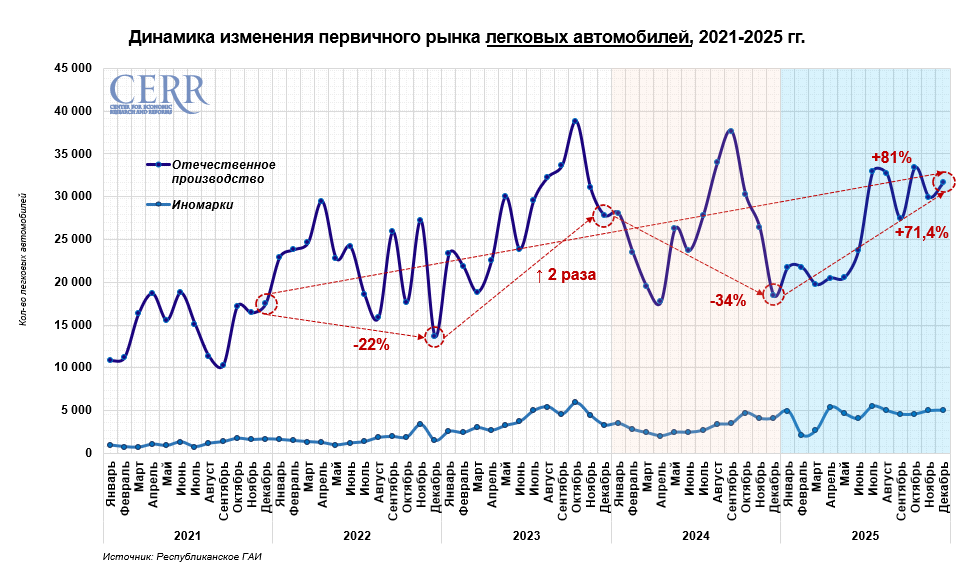 В течение 2025 года продажи новых легковых автомобилей, как отечественного, так и импортного производства, увеличились на 5,2% и достигли почти 370 тыс. единиц.