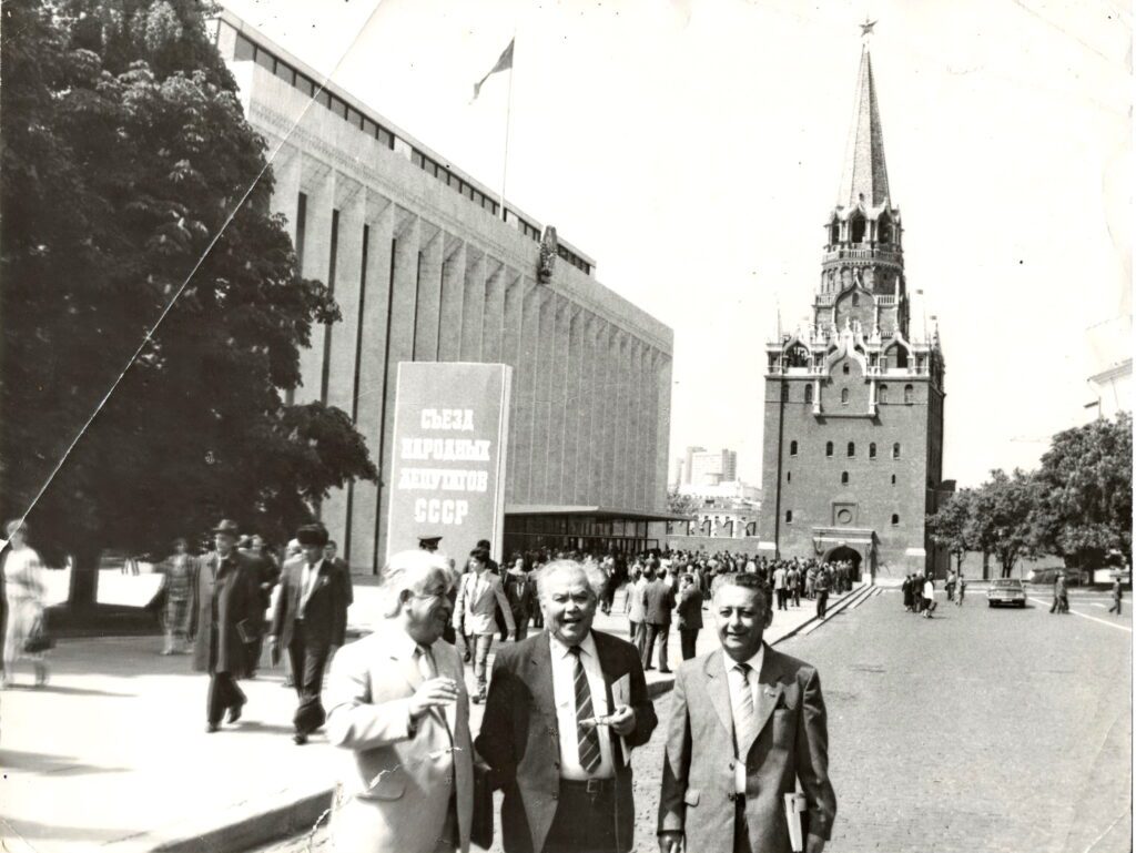 Сегодняшний сессионный день закончился. Вместе с народными депутатами СССР Адылом Якубовым и Эркином Юсуповым возращаются в гостиницу «Россия».