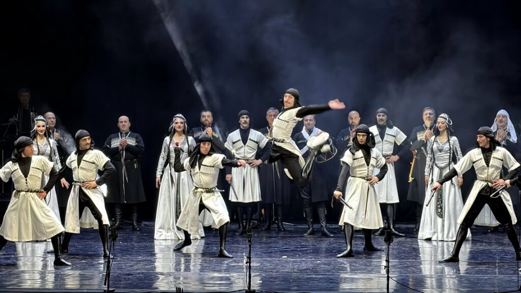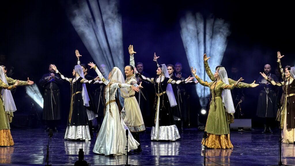 Продолжением программы стало выступление легендарного Государственного академического ансамбля народной песни и танца Грузии «Эрисиони». С первых минут сцена наполнилась стремительной пластикой, темпераментом и мощной энергетикой, которыми во всём мире славится грузинский танец. Яркие костюмы, виртуозная техника и эмоциональная выразительность артистов создали атмосферу настоящего праздника. Каждый номер встречался горячими аплодисментами зала.