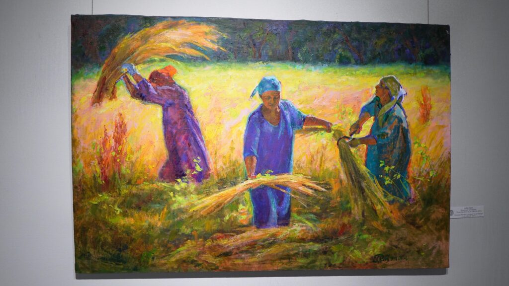 Особое место на выставке занимают жанровые композиции. Впервые широкой публике представлено полотно «Хлеб Памира» (2026). Эта работа, как и многие другие, мастерски сочетает в себе декоративную выразительность цвета с тончайшей передачей атмосферы.