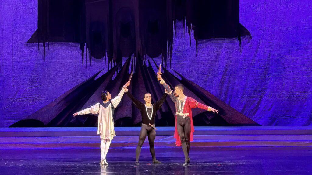 Главным событием спектакля стал дебют Сардора Садинова в партии Ромео. Для молодого артиста это серьёзный рубеж — и он прошёл его уверенно и ярко. Его герой получился искренним, импульсивным, полным юношеской энергии и отчаянной любви. В танце чувствовалась свобода — прыжки, вращения, партнёрские поддержки выглядели естественно и эмоционально. Особенно запомнился дуэт на балконе — сцена получилась живой, напряжённой, с той самой химией, ради которой зритель приходит в театр.