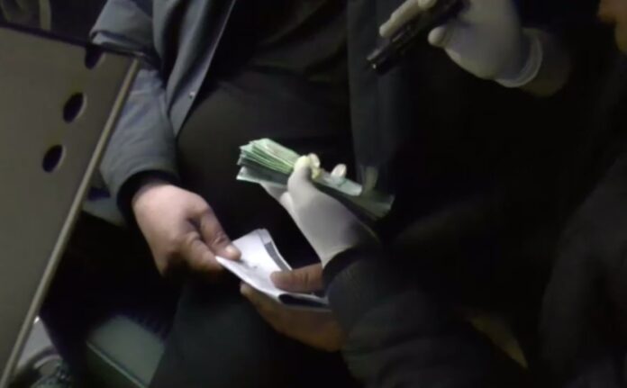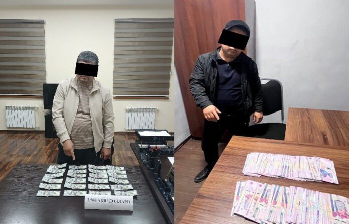 4 марта возле здания хокимията Хатырчинского района подозреваемый получил от потерпевшего 20 миллионов сумов, после чего был задержан сотрудниками правоохранительных органов в присутствии понятых.