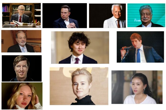 Технологический сектор представлен особенно мощно: основатели и руководители Google, Meta, Amazon, Oracle, Microsoft, Dell и Nvidia составляют костяк рейтинга.