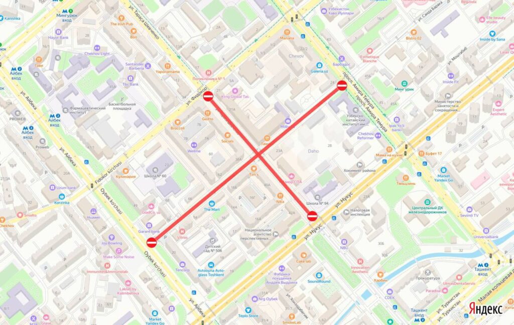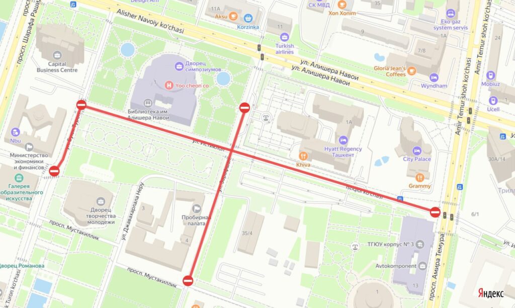 Маълум қилинишича, 2025-йил 15-декабрдан 2026-йил 15-январгача Ўзбекистон Миллий кутубхонаси олди майдонида қуйидаги кўчаларнинг айрим қисмларида ҳаракат чекланади: