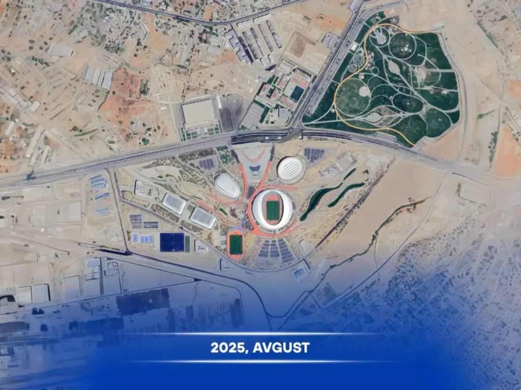 Таҳлил давомида спорт мажмуасининг турли йиллардаги ҳолати солиштирилиб, ҳудуднинг босқичма-босқич кенгайгани, инфратузилманинг янгиланиши ҳамда қўшимча спорт иншоотлари барпо этилгани аниқ кузатилди. Суратлар қурилиш ишларининг жадаллиги, ер майдонидан фойдаланиш самарадорлиги ва атроф ҳудуднинг ўзгаришини кўрсатади.