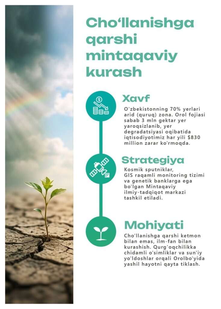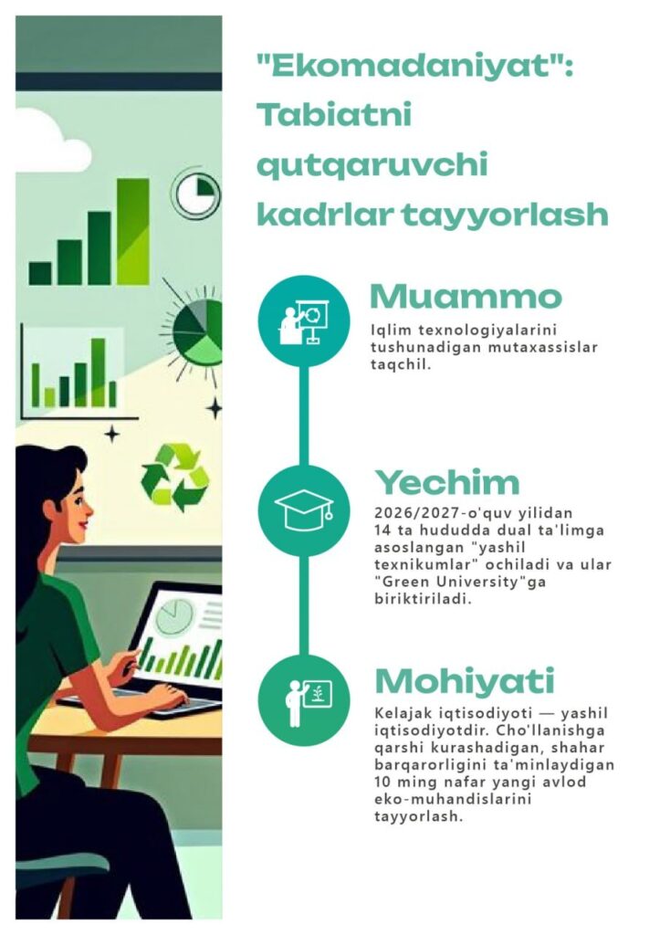 Ўзбекистонда 2026–2030 йилларга мўлжалланган экологияни муҳофаза қилиш бўйича умuммиллий лойиҳа тасдиқланди. Ҳужжат ҳаво сифатини яхшилаш, чўлланишга қарши курашиш ва табиатни асрашга қаратилган.